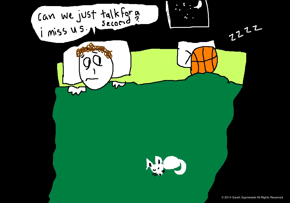 Then a few months passed and a dark existential dread crept into my life. My days were no longer colored by hopeful thoughts like, Today! I shall become better at basketball! One day I will conquer this dastardly game!