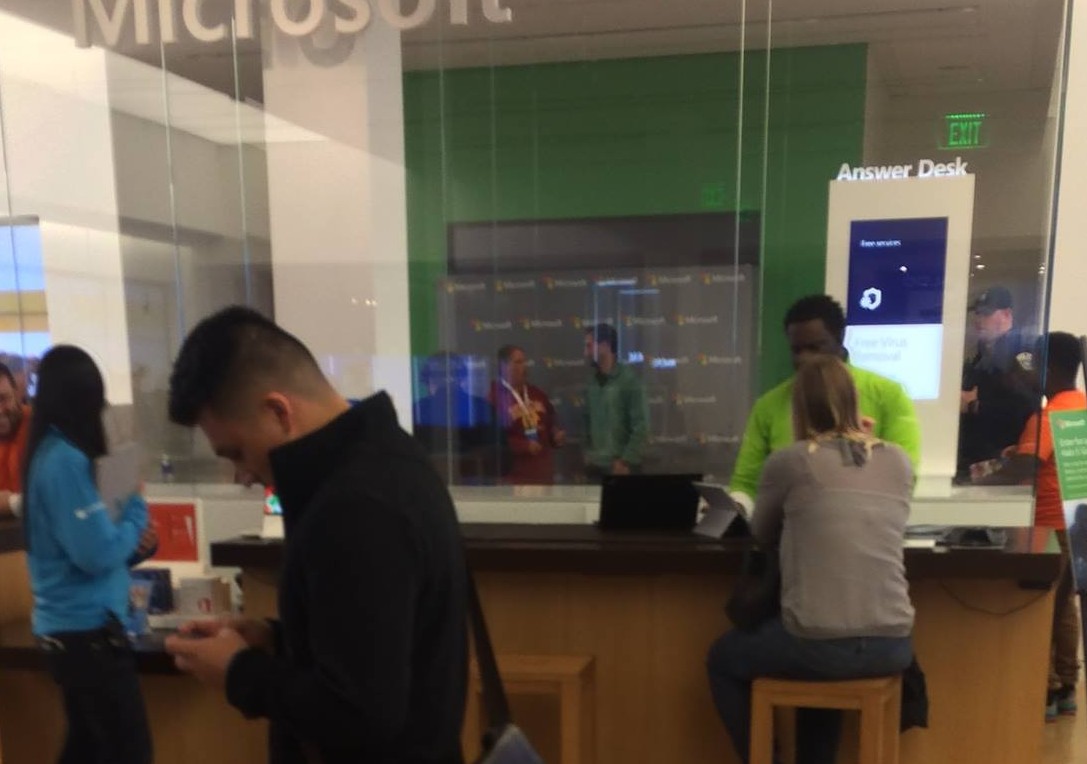 It’s hard to imagine the queuing area would’ve been full if the previous day’s game had turned out differently, as it seemed it would when the Redskins were on the sour end of a 24-0 score midway through the second quarter. The Microsoft event had several things working against it. First, it was at the Microsoft Store, which averages one-tenth the number of customers the Apple Store does at any given time, and is only slightly more popular than places like Vitamin Shoppe, and the weird abandoned store that’s only open in October and sells overpriced Halloween costumes made of tissue paper. If you’ve ever been to the Microsoft Store, or even just walked by it, you know the experience is most notable for the stares of its employees, who desperately want customers, but just as desperately want to avoid human interaction.