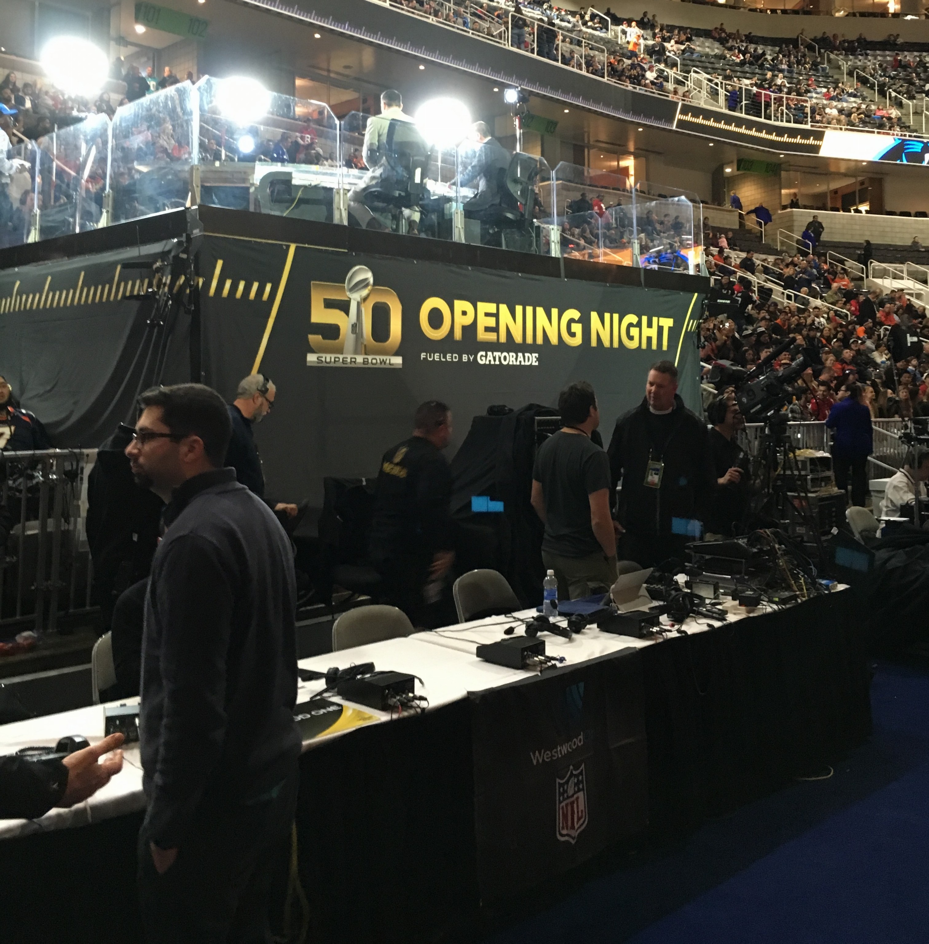 Naturally, I went to Super Bowl Opening Night. It’s the traditional Media Day, now flexed into primetime.