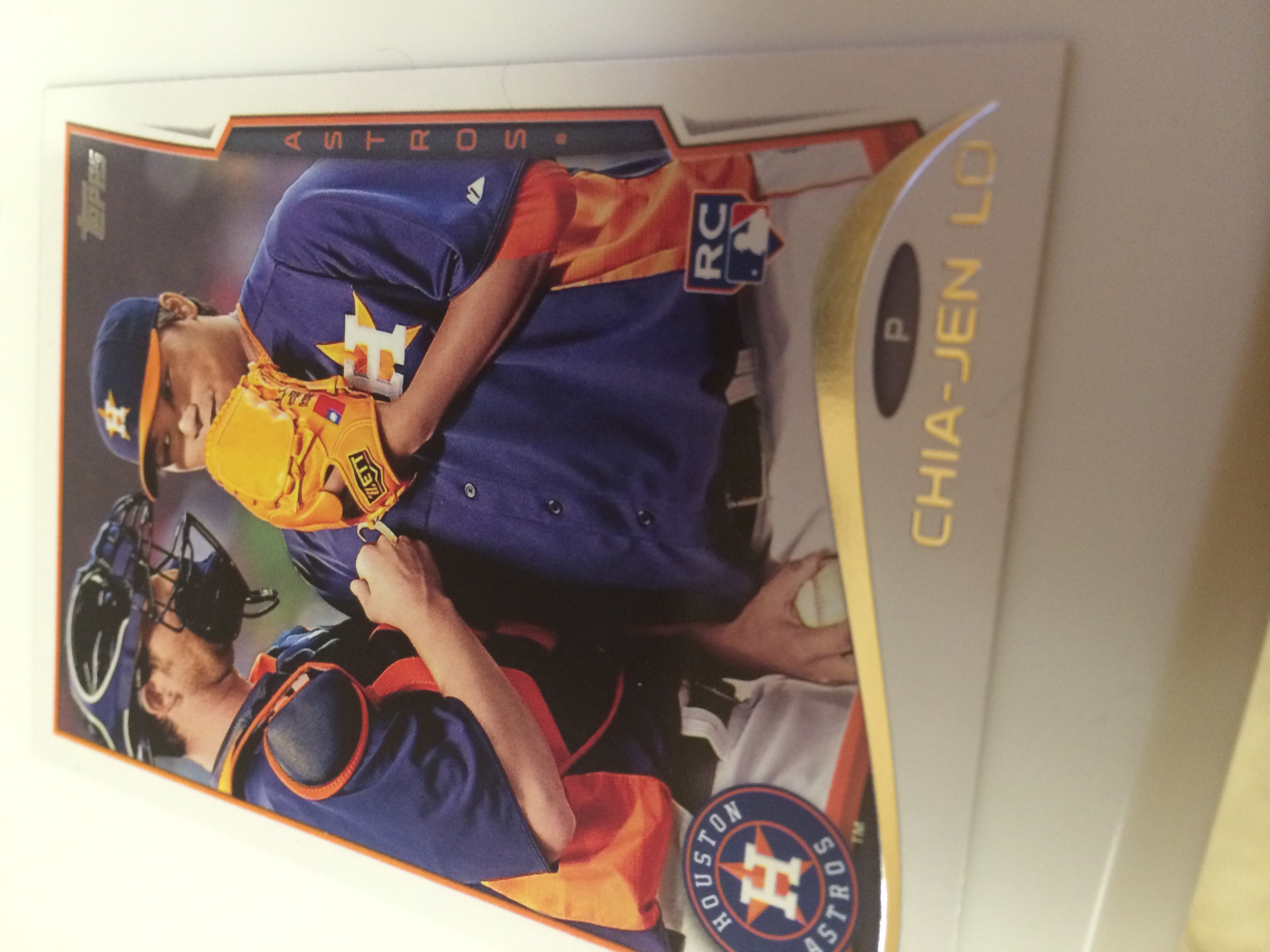 Remember how I said the radio could help me discover songs and artists I knew absolutely nothing about, or had even heard of? Nothing illustrates baseball cards’ radio-like qualities better than this Chia-Jen Lo rookie card. I guess I should forgive myself for not knowing a late-season addition to the league’s worst team, but I feel like this 28-year-old Taiwanese pitcher with a 2.18 career ERA in the minors should’ve at least been on my radar. Lo is back in Houston’s minor league system to start 2014, where he has a 2.87 ERA but a 1.65 WHIP. But given the limited requirements for being a pitcher on the Astros’ roster (bipedalism), it wouldn’t surprise me to see Lo in Houston’s snazzy blue-and-orange uniforms soon, where he’ll go something like 0-6 with a 0.92 ERA and a million strikeouts.